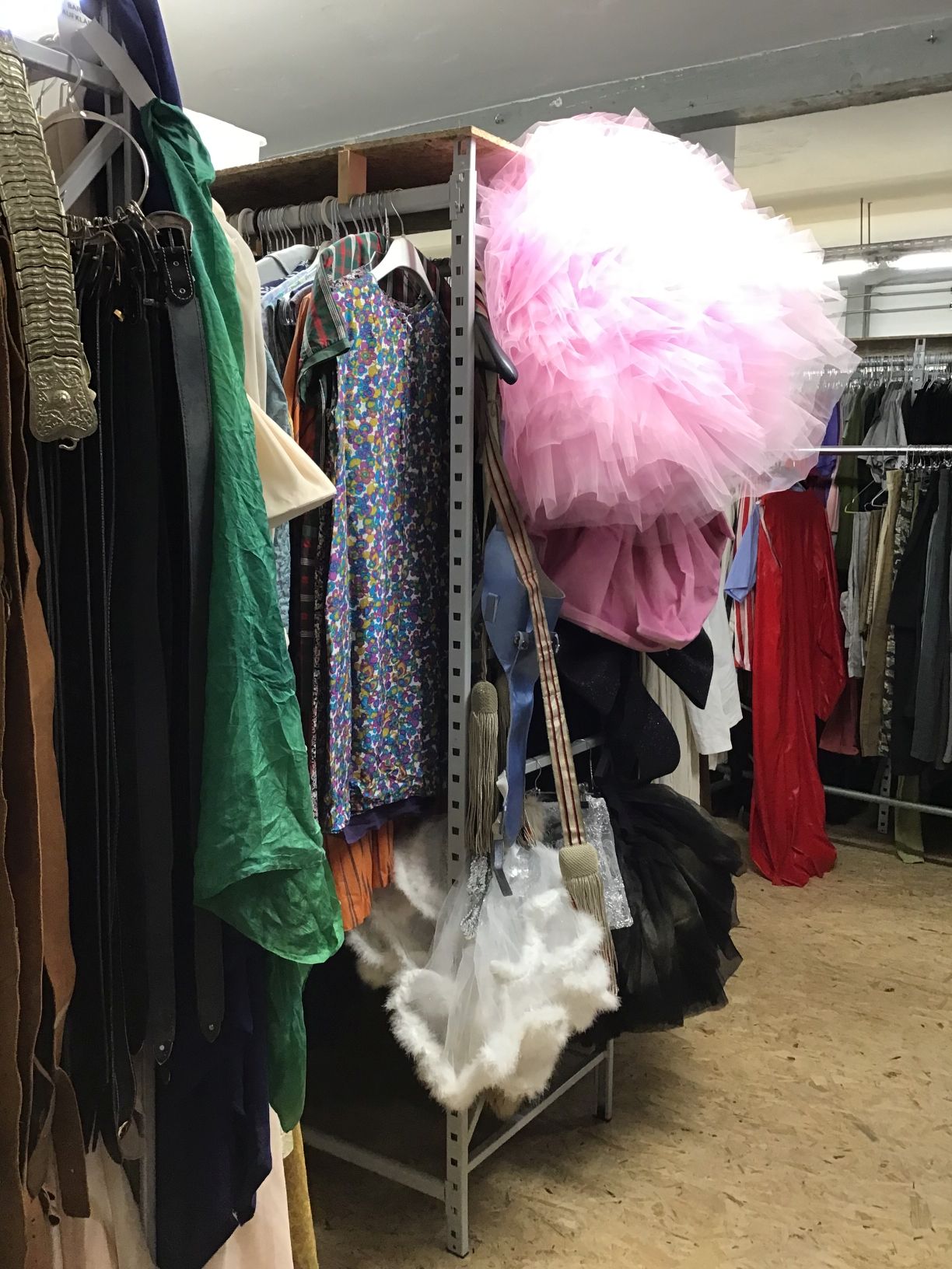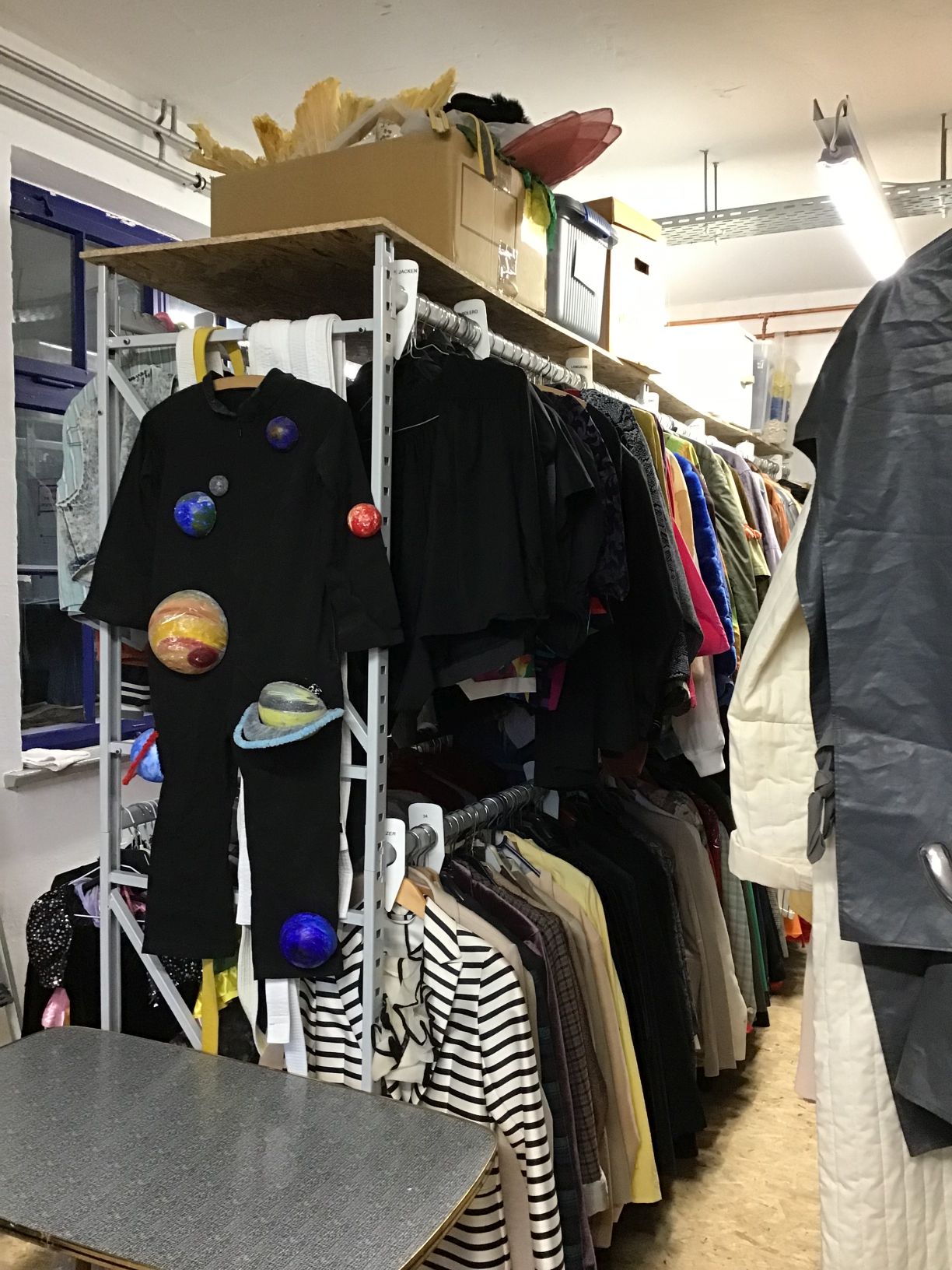 In den DAT Werkstätten befindet sich der Kostümfundus, die Schneiderei und die Holzwerkstatt. Hier werden die Kostüme und Bühnenbilder für die DAT Theaterproduktionen hergestellt und Kostümanproben gemacht.
