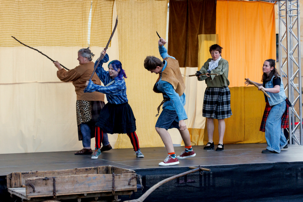 In diesem interaktiven Stück treffen die Zuschauenden die Entscheidungen für die beiden Hauptfiguren: Ob die Magd Kompromisse sucht oder zum bewaffneten Widerstand aufruft, ob die Äbtissin ihre Haltung ändert oder daran festhält – die Zuschauenden entscheiden und verändern so den Lauf der Geschichte. Dreiunddreißig mögliche Szenen und vier Bühnen eröffnen alternative Versionen des Bauernaufstands, der vor 500 Jahren vor den Toren Böblingens blutig niedergeschlagen wurde.