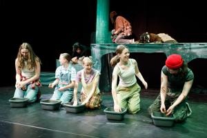 Der Theaterjugendclub des DAT zeigt in einer atmosphärisch dichten Inszenierung voller Wald, Wasser und Matsch die Bearbeitung des mit dem Jugendliteraturpreis 2016 ausgezeichneten Romans von Kirsten Fuchs.