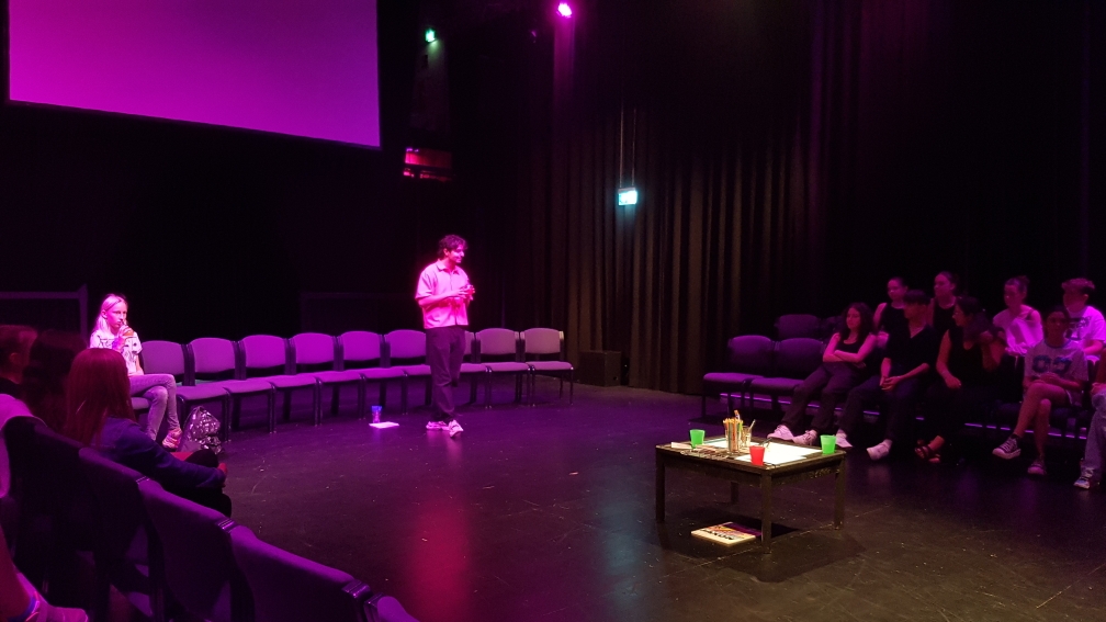 Bei der “DAT Kunstparty“ im Feierraum präsentierten Kunstschüler*innen aus den drei Fachbereichen ihre künstlerischen Talente und gaben so einen Einblick in ihre Arbeit des letzten Jahres. Mittels kleiner Übungen und Aktivitäten schuf unser Freiwilliger Güney Gencer eine kreative und sichere Umgebung. Dabei tauchten die Schüler*innen auch in eine für sie jeweils ungewohnte Kunstformen ein und trauten sich durch die spielerische und wertfreie Herangehensweisen, ihre eigenen Grenzen zu überwinden und neue künstlerische Bereiche zu erkunden. Die Veranstaltung bot eine vielfältige Palette von Kunstformen, von bildender Kunst bis hin zu Theater und Tanz und förderte nicht nur die künstlerischen Ausdrucksmöglichkeiten, sondern ermöglichte auch einen inspirierenden Austausch und eine tiefere Verbindung zwischen den Schüler*innen der drei Fachbereiche.