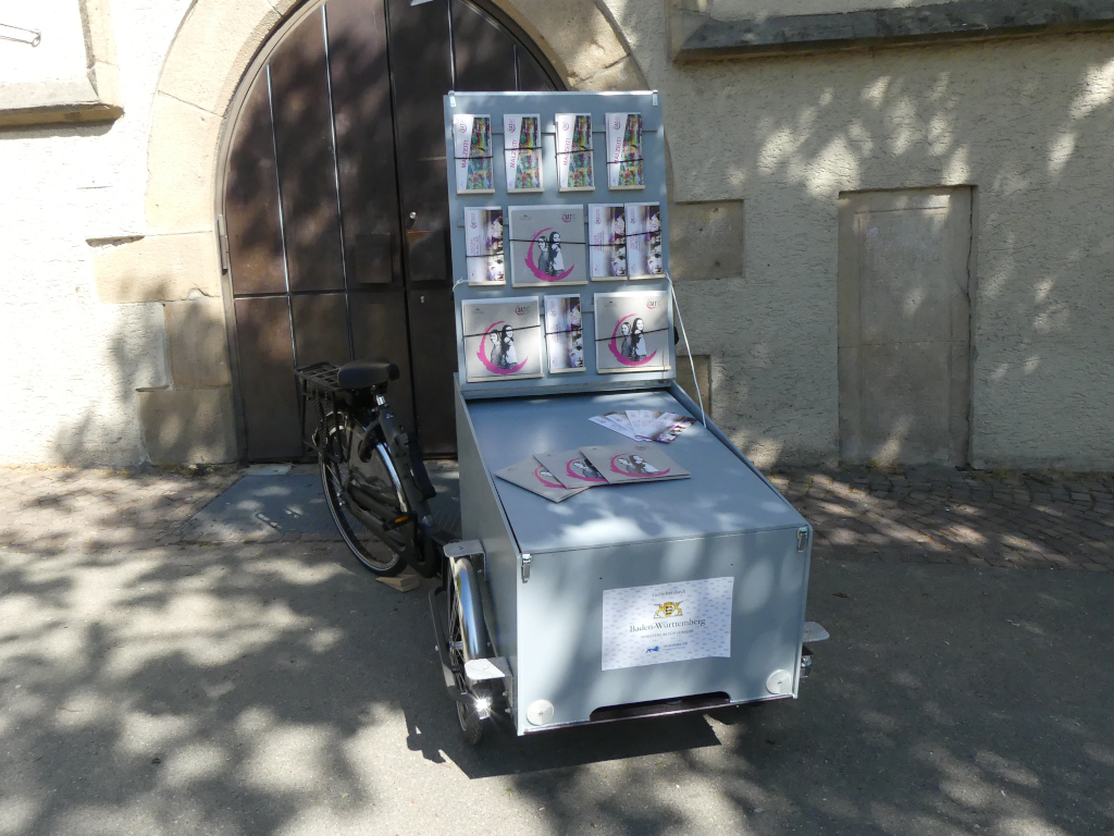 Das neu angeschaffte Lastenfahrrad der DAT Kunstschule wurde durch die FSJ-lerin Benita Koch zu einem mobilen Infostand umgebaut. Außerdem gestaltete sie in enger Absprache mit dem DAT-Team die Hoodis und T-Shirts.